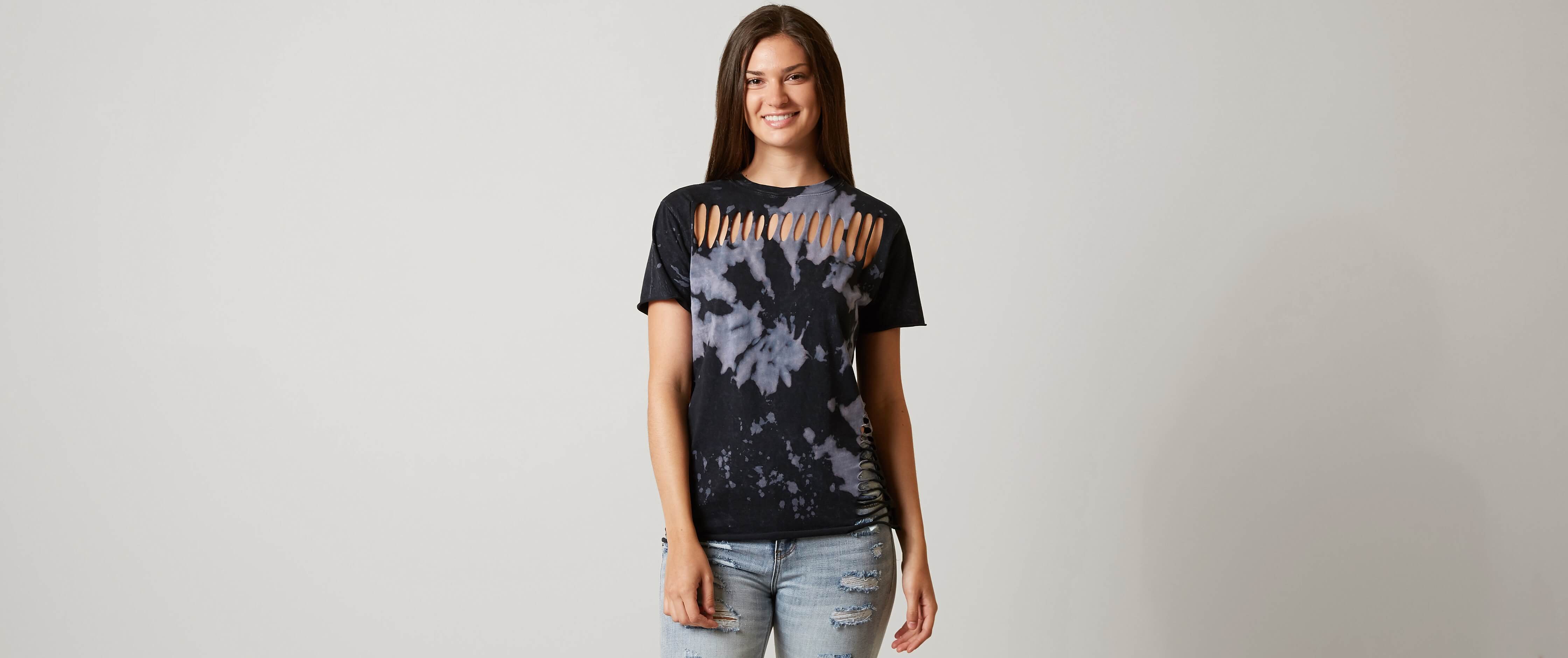 Affliction Standard Supply Tie Dye T Shirt Women S T Shirts In Black Blue Bleach Tie Dye Buckle
