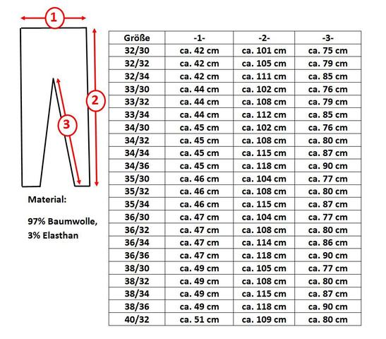 Umrechnungstabelle W L Herren Jeans Grossen