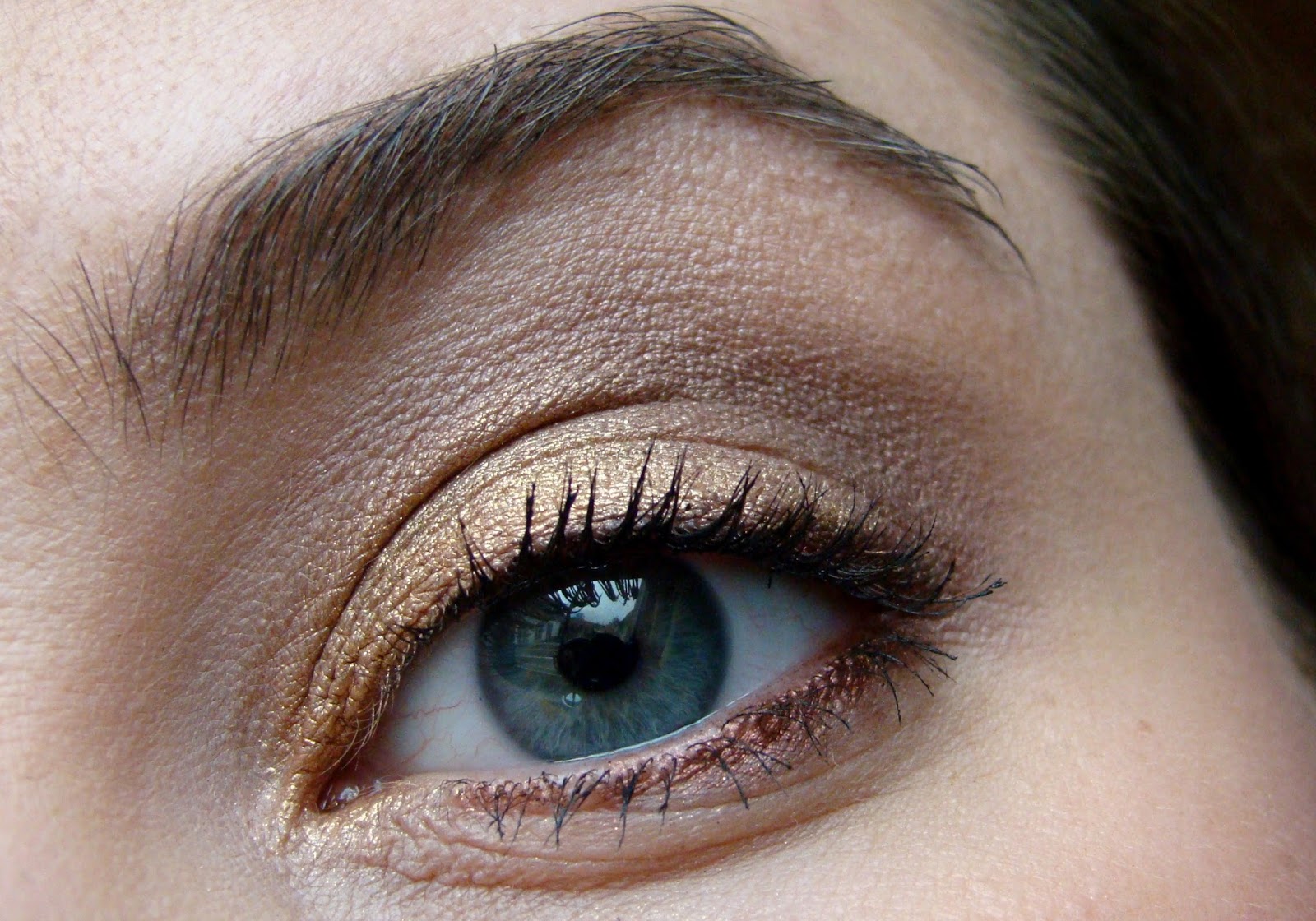 An den Augen aufgetragen, war es jedoch eine ganz andere Sache die Farbe passt überhaupt nicht zu meiner Grünen, ins Braune stechenden Augen Durch den grauen Glanz des Lidschattens sah mein rundum geschminktes Auge eher aus wie ein Veilchen.