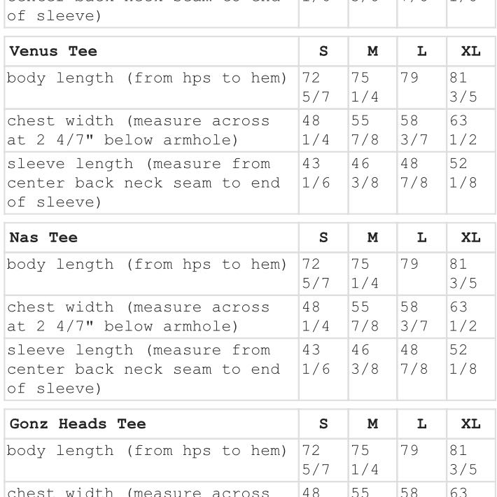 Tmg Grossentabellen Tmg Clothing