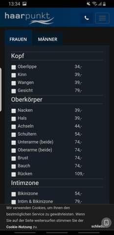 Besenreiser entfernen – für ein gesundes und schönes Hautbild Auch wenn Besenreiser (oder Besenreiservarizen) aus medizinischer Sicht fast immer harmlos sind Viele Menschen empfinden sie als störend – und wünschen sich ein Hautbild ohne diese kleinen erweiterten Venen, die auf der Haut als bläuliche Netze, Fächer oder Flecken sichtbar werden. Unser Diodenlaser wurde auf dem neusten Stand der Technik entwickelt, um eine äusserst effektive und schmerzfreie Methode der dauerhaften Haarentfernung anzubieten;. Preise dauerhafte Haarentfernung* Mann und Frau Einzelpreise & Paketpreise Wir vertreten die Philosophie, für jeden Kunden eine individuelle und auf die Bedürfnisse angepasste Behandlung bereit zu stellen Für eine genaue Ermittlung des Aufwands empfehlen wir Ihnen daher ein erstes unverbindliches und kostenloses BeratungsgesprächDie Preise für eine dauerhafte Haarentfernung* variieren.