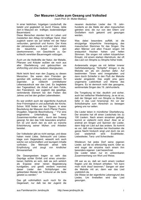Die Liebe Der Masuren Zum Gesang Und Volkslied Jendreyzik De