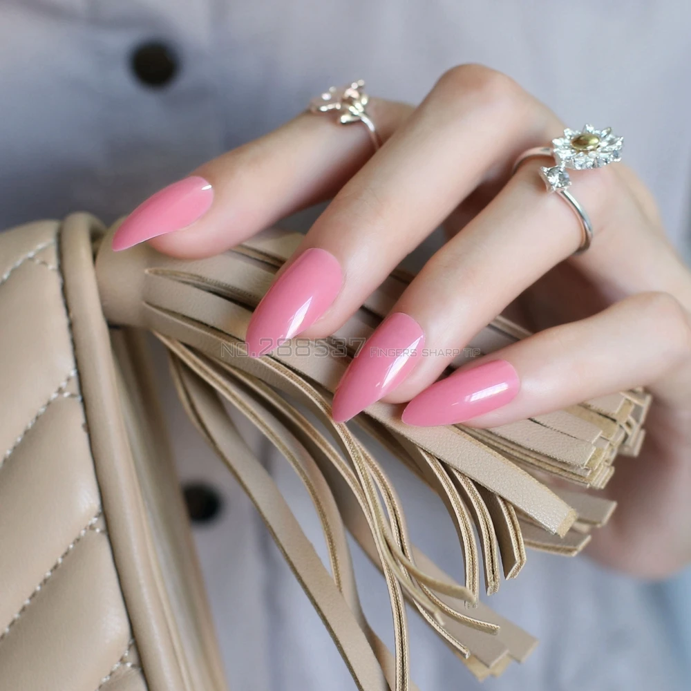 Wovp Kunstliche Nagel 24 Extralange Nagel Rosa Freie Falsche Nagel Spitzen Scharfes Ende Stilett Acryl Kunstliche Gefalschte Nagel Dekorations Spitzen Acryl Amazon De Kuche Haushalt